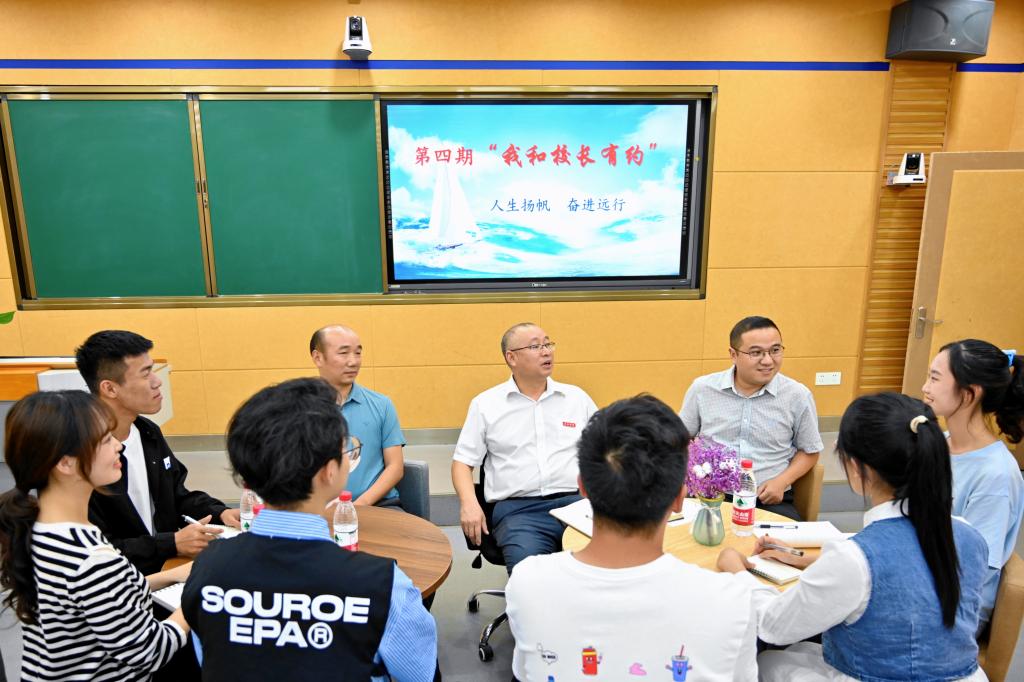 “如何尽快适应大学生活?”“怎样规划自己的学习之路?”9月28日下午,我校第四期“我与校长有约”座谈会在香远楼外国语学院录课室举行。会上,五位新生代表围绕来校后的感悟、职业生涯规划和入校后学习、生活、人际关系等方面的话题与校长陈小林以及特邀嘉宾医学院赵浩博士、经济学院张应华博士进行了深入交流讨论。