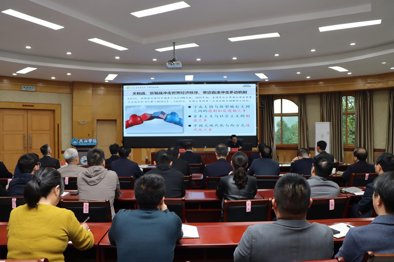为深入学习贯彻习近平新时代中国特色社会主义思想,深刻领会《习近平谈治国理政》第五卷的核心要义与实践要求,10月30日下午,我校在四号会议室召开2025年第九次党委理论学习中心组(扩大)学习会。校党委书记李明斌主持会议并作总结讲话。江西职业技术大学党委委员、宣传部部长聂世平受邀列席旁听并点评。