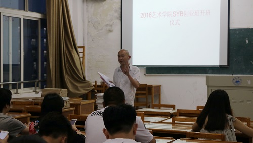 在SYB创业培训班开班艺术上,黄辉说,为促进广大同学更好的就业、创业,提升同学们的创业素质、熟悉创业流程、规避创业风险,使同学们将来更好地服务社会是本次开班的目的所在。就当今社会就业状况而论,艺术类学生就业情况严峻且狭隘,现今创业相较于就业而言实为最佳选择。黄科长还特别强调,希望同学珍惜此次来之不易的机会,时不待人,调整心态,认真学习,提升创业能力,为即将步入社会的自己打下良好基础。