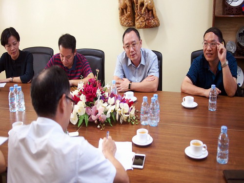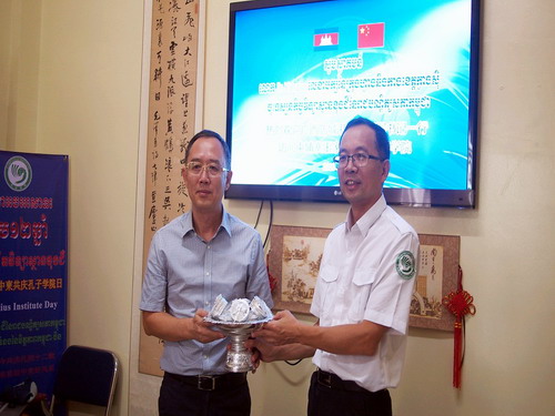 11月4日下午,广西防城港市市委书记金湘军一行七人访问柬埔寨王家研究院孔子学院,孔子学院中方院长夏修龙教授、院长助理陈晶雯老师热情接待了金湘军书记一行,并与客人进行了会谈。