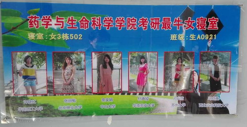 2017考研时钟即将敲响,药生学院本科毕业班考研的学生正在积极备考,为了给正在备考的同学们加油鼓劲,药生学院分别在浔东校区女3栋502寝室和心远楼门口,展示学院曾经的史上考研最牛女寝室。