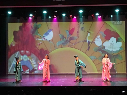 开营当天早晨,简短的欢迎仪式后,来不及倒时差,老师们便立即投入到紧张的教学之中。他们尽可能地为我们提供舒适的生活环境、良好的办公场所、充足的教学场地,一股亲切温暖之意涌入心头,我便暗暗决心要做好接下来的工作。在得知招收的学生近200人时,压力再一次来临,每个学生都要参加两到三门课程的学习,有的学生甚至多达四到五门课程,这与我们之前在国内预想的安排迥然不同。于是大家连夜开会重新设置班级和课程,又连夜赶制教具。在开始的几天里,每天课后大家都要开会讨论,针对当天的教学作出总结,找出不足之处,制定整改方案,大家几乎每天要忙到凌晨才休息,疲惫浮现在每一个人的脸上,但是一到课堂,老师们一个个又打起了十二分的精神。最初的课堂,让老师们最头疼的地方就是教室里没有电脑,每个老师精心制作的课件无法展示给大家。更让我焦头烂额的是戏曲不同于其他课程,对于华人孩子们来说比较陌生和枯燥。没有电脑,没有课件,没有音乐,无法很快激发孩子们的兴趣,打开孩子们对于戏曲的了解和认识,更无法走进孩子的内心。我面对的是一群年龄在6-15岁参差不齐的孩子们,他们的汉语基础差,音乐基础又不好,所以在教学任务上增添了几分难度。
