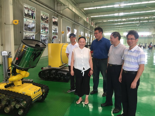 中信重工开诚(共青城)机器人产业基地负责人夏振伟介绍了企业建设情况:自2016年底中信重工开诚机器人落户共青城市以来,企业得到飞速发展,目前产品主要包括消防排烟机器人、侦查机器人、排爆机器人、水下机器人、市政应用地下综合管廊巡检机器人以及石化企业应用的油罐清淤机器人等,预计可年产2000台特种机器人。企业需要“留得下,用得好”的高素质人才队伍,希望能够和九江学院机材学院深入开展产学研合作。