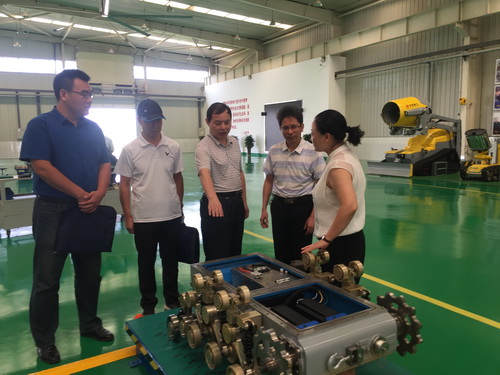 机材学院一行人员观看了铁路列检机器人、水下机器人、防爆轮式巡检机器人等特种机器人性能演示,纷纷称赞其科技含量。