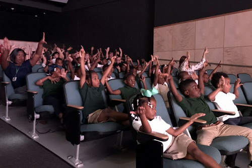 当天上午,来自萨凡纳市查特姆学区( Chatham )的八所中小学师生共计四百余人齐聚艾伦高中(Islands High School),共同见证了“孔院日”庆典的欢乐时刻。不少学生还带上自制的中国国旗,场面十分欢悦。萨凡纳州立大学孔子学院外方院长佩吉·布拉德博士向师生介绍了孔子和孔子学院,然后带领大家兴致勃勃地观看了中国民族舞蹈表演。整场演出以中国少数民族文化习俗介绍和特色舞蹈表演穿插的方式进行,形式新颖独特,孩子们争相上台跟着演员学习孔雀舞、红绸舞,模仿得惟妙惟肖。
