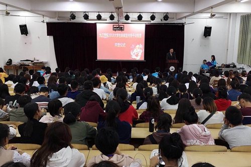 10月13日下午,我校大学生新闻宣传骨干训练营在文理实验楼117报告厅正式开营。校党委委员、党委宣传部部长冯健出席开营仪式并致辞,党委宣传部大学生新闻中心指导老师及全体学生记者、各二级学院学生新闻工作者300余人参加了开营仪式。