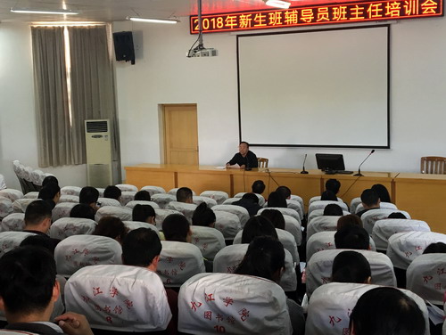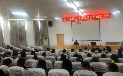 为学习贯彻党的十九大会议精神,贯彻落实中共中央国务院《关于加强和改进新形势下高校思想政治工作的意见》和全国、全省高校思想政治工作会议精神,落实立德树人根本任务,切实加强我校辅导员、班主任队伍建设,10月17日下午,学校在图书馆一楼报告厅举办了2018年新生班级辅导员、班主任培训会。来自全校19个二级学院近200名辅导员、班主任参加了培训。会议由学工部副部长范宇航主持。