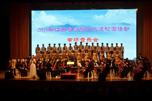 高雅艺术进校园活动旨在培育和弘扬社会主义核心价值观,提升校园文化品位,丰富校园文化生活,引领学生走进艺术、感受经典、陶冶情操、提高审美。我校艺术团根据省教育厅安排,11月21日由艺术学院副院长欧阳时来带领艺术学院艺术团140位师生赴景德镇文艺小学和景德镇陶瓷大学,开展2018年江西省高雅艺术进校园巡演活动。