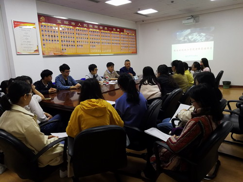 开座谈会是实习检查中重要一环节。与医院老师交流后,检查组的老师召开所有实习同学座谈,听取学生汇报学习工作体会收获,对教学上的意见建议,了解学生生活状况。同时,老师针对性地对学生提出一些要求和希望:加强自主学习,注意诊疗安全,协调好医患关系,确保人身安全。通过座谈引导学生积极主动择业,树立良好就业意识——先就业再择业。希望2019届实习生后期继续努力,圆满完成实习任务,平平安安返校。