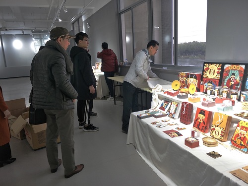 2018年12月5日,受中国文化部下属管理协会传统手工艺专业委员会*中国艺术高校产学研实践教学集聚区,智慧谷基地董事长蒋永强、总经理王国栋之邀,我院视觉传达吴晨晖主任及视觉传达系四位同学于12月6日带展品受苏州“大国工匠·智慧谷”艺术馆邀请进行布展,过程虽然繁杂,但看着整齐而又凸显独特风格的一排排作品,感到骄傲而欣慰。