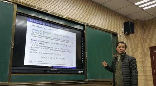 郭军博士的研究方向为声波、电磁波、弹性波反散射理论,电阻抗断层成像问题,偏微分反问题等。近五年发表论文SCI论文十九篇。郭博士介绍了自己在带有斜导数的边值条件的反问题上研究的突破以及国内外在该领域近年来的研究状况。解答了研究方向相近的老师的提问。