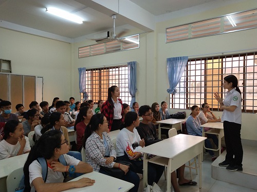志愿者教师叶鑫为学生讲解孔院奖学金相关内容