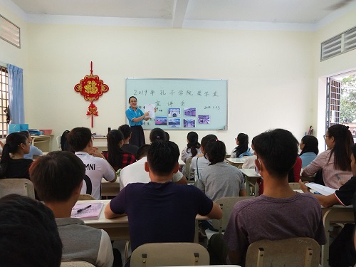 为了加强柬埔寨皇家科学院孔子学院暹粒吴哥高中孔子课堂在当地的影响,让更多的人了解孔子学院奖学金,鼓励更多的柬埔寨学生前往中国留学,2019年1月23日下午5时,柬埔寨皇家科学院孔子学院暹粒吴哥高中孔子课堂为新学期学员举办了“2019年孔子学院奖学金”宣讲会。吴哥高中孔子课堂全体教师和约80名学生参加了此次宣讲。