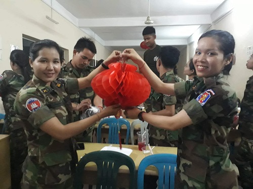 为丰富金边警备旅孔子课堂全体学员的课余文化生活,满足孔子课堂在读士兵的中国文化学习需求,使金边警备旅汉语学习者度过一个安定、欢乐、祥和、文明的春节,营造充满生机、昂扬向上的文化氛围,2019年1月25日晚,金边警备旅于2019年农历猪年春节到来之际,充分利用柬埔寨皇家科学院孔子学院和警备旅文体设施,开展了春节文化体验活动。此次活动由汉语教师志愿者魏来策划主持,金边警备旅孔子课堂全体学员参与,本次活动内容充实,过程精彩,让全体警备旅学员享受了同学之间联欢的乐趣,增加了节日的氛围。