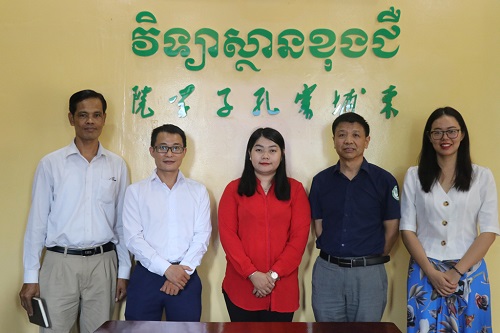2月20日下午,世界青年文化旅游职业学校李彦辉校长一行3人访问柬埔寨皇家科学院孔子学院。柬埔寨皇家科学院孔子学院中方院长柴克清、柬方院长苏碧娜(Vuth Sopheakna)在孔子学院一楼会议室接待来宾,双方展开友好会谈。