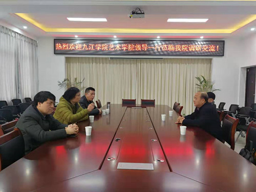 王春生对南昌航空大学艺术与设计学院的热情接待表示感谢!并简要介绍了我校艺术学院的基本情况和近年来发展情况,特别是博士培养及引进工作进行了深入的交流;特意感谢江西省美术家协会工业设计委员会主任熊建新教授,为支持九江学院发展,把江西省第七届工业设计双年展的主办权及承办地点放在九江学院;同时就双年展的相关活动相关事宜进行了咨询,希望熊教授给予更多资源的支持与帮助。