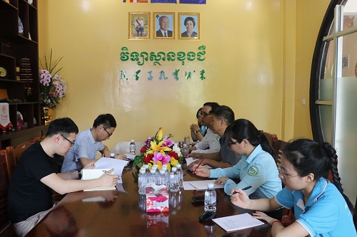 会上,双方还就孔子奖学金工作的开展情况以及柬埔寨学生去中国留学的形式等问题展开讨论。柴克清院长和苏文鹏老师一致认为,柬埔寨皇家科学院孔子学院的汉语教学工作现已取得很大成就,下一阶段我们可以寻求与国际学校合作,推进汉语教学学分制。在孔子学院各类型教学点要建立我们自己的特色,要继续坚持并且持续做大不放手。