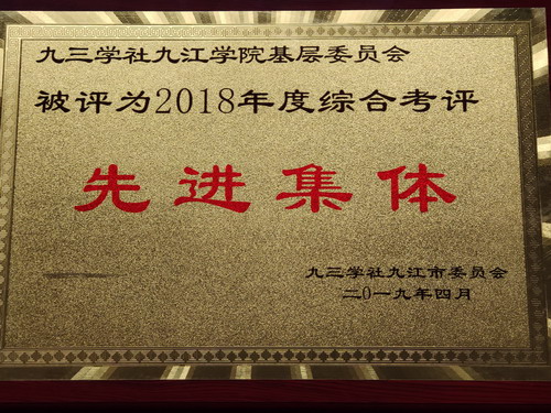 这次会议上,九三学社九江学院基层委员会荣获2018年度九江市:综合称号先进集体、参政议政先进集体、宣传工作先进集体、社会服务先进集体、组织建设先进集体等多项先进集体荣誉,余剑敏、李军等社员同时受到相应的个人表彰。