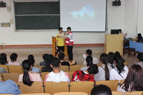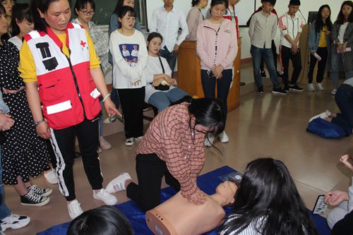 为进一步提高广大师生的应急救护的意识和能力,校医院邀请九江市红十字会急救培训专家对我校第三批学生卫生健康服务队员、学生代表进行应急救护培训,整个培训从4月10日开始到4月24日为止已顺利结束,考核合格的学员将获得红十字会救护员证。