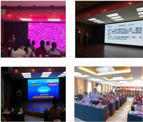 开幕式后,中华医学会病理学分会副主任委员、北京市医学会病理学分会主任委员、北京医院病理科主任刘东戈教授系统地讲授《胃肠神经内分泌肿瘤的病理诊断》;广东医学会病理学主任委员、中山大学附属第一医院病理科主任韩安家教授详细讲授《肺小标本活检病理诊断》的专题报告;复旦大学华山医院病理科副主任唐峰教授详细讲授《乳腺少见疾病病理诊断及鉴别诊断》;江西省医学会病理学主任委员、南昌大学第一附属医院病理科主任梅金红教授为大家讲授《分子病理在肠癌诊治中的意义和进展》专题授课,代表们聆听了四位专家的精彩学术报告后,结合临床实践、围绕临床热点、病理诊断难点问题和分子病理等方面展开热烈的讨论和交流。