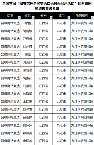 读者组网络选拔晋级名单