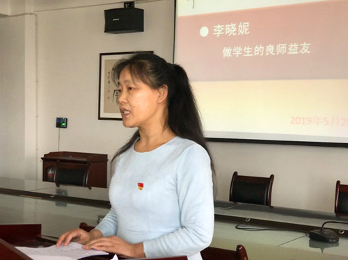 李晓妮老师老师讲述的题目是:《做学生的良师益友》。她首先饱含深情地回忆了中小学时给她留下深刻印象并对她的人生有着深远影响的两个良师益友:五年级时的班主任冯志斌老师,带领同学们开展各种有益的活动,给同学们谈理想、聊人生。高三时的数学老师张志孝,在她人生最为艰难的岁月里给了她生活上的照顾,精神上的鼓励。她说:张老师(也包括冯老师)对良师益友这种充满真情、温情和正能量的诠释,对于有幸成为老师的我来说,值得我一辈子回味,一辈子传承!如何做一名好老师?每当面对这个问题。我都会回想起冯老师、张老师,以及近二十年求学经历中所遇到的很多印象深刻的老师,在他们的身上寻找答案。谈到现在的工作,她说:每每接手一个新班级,我都尽可能的找学生聊天谈心,尽快熟悉学生情况,经常去学生宿舍转转、看看、聊聊,尽可能走进学生的内心世界,以便更有针对性地教育引导。有时,我还会邀请有特殊情况的学生到家里吃饭,并花费比较大的精力通过QQ、聊天群等方式与学生沟通交流,及时掌握信息,妥善处理问题。得到学生的认可时,她感慨道:感受学生对我的认可,还是很有成就感的,一种被当作良师益友的成就感!因为,成为学生的良师益友,正是我为人师者的职业追求!又岂止是职业追求?这就是我此生此世的人生追求!