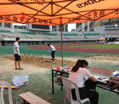 6月8日—9日,九江市青少年田径锦标赛在九江市体育中心举行。应九江市体育局邀请,体育学院选派A1811班43名同学担任比赛裁判工作。在总裁判长黄卫东老师的带领下,在全体裁判员的共同努力下,顺利完成了比赛的执裁任务。