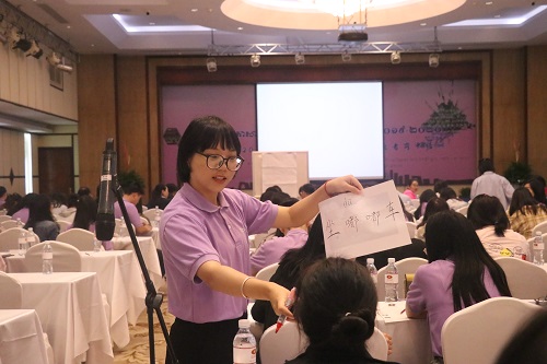 随后,首都师范大学国教学院林秀琴副院长向大家讲解了如何设计以学生为中心的教学活动,林老师说,“课堂应是活动的、交际的、创造的课堂,教师要用活动引燃你的课堂,让学生多多参与进来。”金边皇家大学DHY汉语中心周丽云主任分享了中柬课堂教学对比暨跨文化适应案例与经验,周主任提到,“学生们学习汉语有不同的动机,针对不同的动机要采取不同的方法。” 下午,志愿者们分别按照“风景名胜组”/“高棉水果组”分组互动,分享彼此的教学游戏法。短短一个每位志愿者教师就学习到了超过30个教学游戏,收获满满。