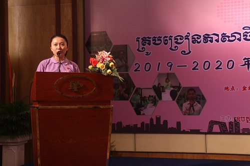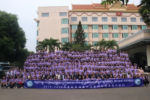 11日上午,2019-2020年度赴柬汉语教师志愿者岗中培训在柬埔寨金边大酒店顺利开幕。柬埔寨皇家科学院秘书长杨博(YANG Peou)博士、孔子学院总部/国家汉办项目官员来永梅女士、柬埔寨柬华理事总会常务副会长兼文教处长郑棉发勋爵、柬埔寨柬华理事总会常务副会长兼文教副处长蔡伟华先生、柬埔寨柬华理事总会常务理事陈中盛先生、吴朝文先生、孙宝儿先生、曾广荣先生、柬埔寨柬华理事总会常务秘书钟耀辉先生、柬埔寨皇家科学院孔子学院柬方院长苏碧娜女士(VUTH Sopheakna)、中方院长柴克清先生、首都师范大学国教学院林秀琴副院长、柬埔寨皇家大学DHY汉语中心主任周丽云先生、志愿者管理教师田金金女士、李玉立先生等领导莅临本次开幕式。苏碧娜院长、郑棉发勋爵以及来永梅女士致辞,希望志愿者们“展现青春风采,让‘汉语之花’在柬埔寨继续美丽绽放”。全柬253名汉语教师志愿者和16名公派教师参加了本次开幕式。