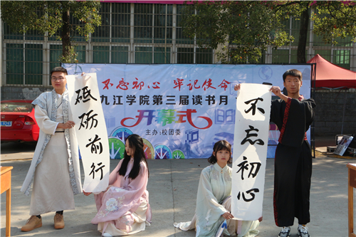 书香砺初心,笃行担使命。11月9日上午,由党委宣传部、校团委、图书馆联合主办,校学生会、校社联承办的我校第三届“不忘初心、牢记使命”主题读书月活动开幕式在三食堂广场举行。党委宣传部、校团委、图书馆及学生代表参加了开幕式。