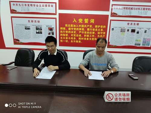11月3日,九江市科技工作者帮扶企业“双百行动”委托项目在我校机械实验楼305举行。市发明学会党支部书记、常务副理事长、我校产学研办公室副主任宋士华及市发明学会秘书处工作人员参加会议。会议由市发明学会秘书长赖亚汝主持。