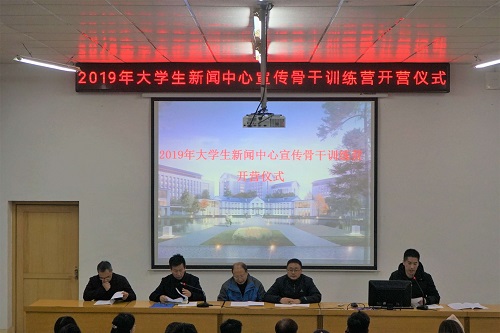 11月27日下午,我校大学生新闻宣传骨干训练营在图书馆报告厅正式开营。校党委委员、党委宣传部部长冯健出席开营仪式并致辞,党委宣传部副部长万三友、汪浩,党委宣传部大学生新闻中心指导老师及学生宣传骨干100余人参加了开营仪式。