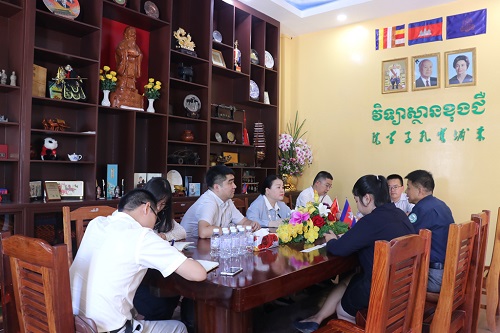 随后,陆文辉主任对孔子学院的运营和活动模式提出了一些疑惑,两位院长进行了耐心解答。听了两位院长的回答,陆文辉主任进一步表达了合作意向,她说如果能够与孔子学院进行合作,可以进一步促进中柬文化交流,增进两国友谊。柴院长指出,孔子学院一直致力于中柬文化的交流,在交流中相互理解,“一带一路,民心相通”,孔子学院的老师就是在教学过程中与学生进行心灵沟通,在“面”上做得更广,只有沟通了才能理解,只有在理解的基础上才能推进“命运共同体”。柴院长提到,在苏院长的支持下,孔子学院也举办了许多活动,比如“江苏杯演讲比赛”、“汉语桥比赛”和各类中柬文化活动等,每年也会邀请中柬专家进行学术沟通,增进双方友谊。