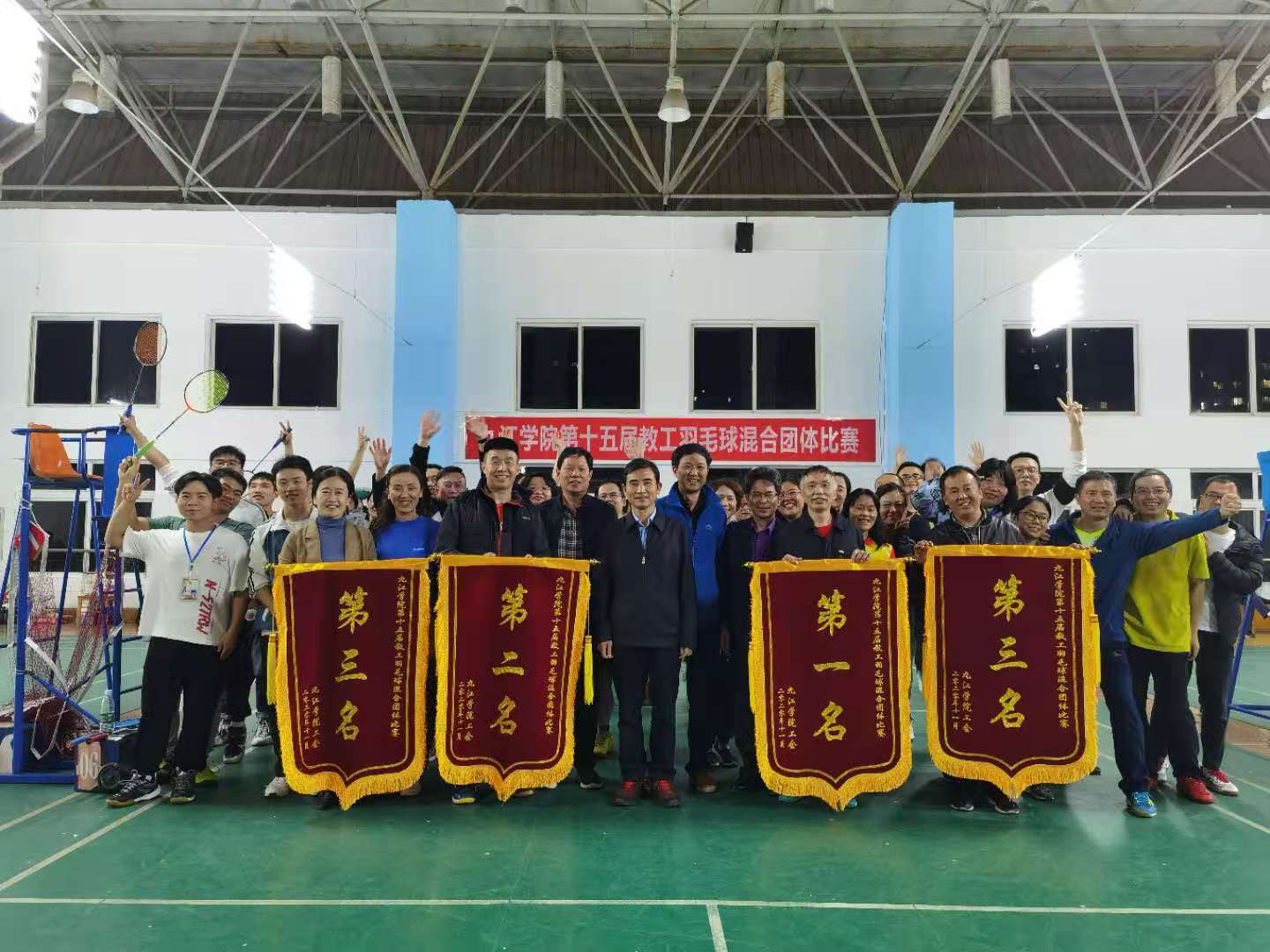 为丰富校园文化生活,促进教职工之间的沟通交流,充分展现我校教职工良好的精神风貌,11月11日至13日,由校工会举办的第十五届教职工羽毛球混合团体比赛在主校区室内田径馆落下帷幕。经过三天激烈角逐,图书馆获得第一名、机械与智能制造学院获得第二名,附属医院、化学环工学院并列第三名。决赛当晚,校党委副书记魏立平亲临比赛现场,为参赛队员鼓劲加油并颁奖。