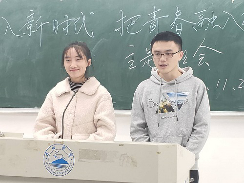 11月29日晚,副校长王万山到义丰楼305教室参加经济学院A1842班“将梦想融入新时代,把青春融入祖国发展”主题班会。经济学院负责人、院团委学生科等相关人员陪同。