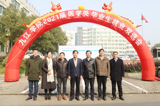 为搭建用人单位和毕业生双向选择平台,促进毕业生及时高质量就业,12月13日上午,我校2021届医学类毕业生就业双选会在九江学院附属医院图书馆隆重举行。招聘会吸引了来自浙江、江苏、湖北、江西共51家医疗卫生企事业单位参加,他们带来了1000余个就业岗位。副校长杨耀防、医学部、护理学院,附属医院负责人到场看望用人单位代表及应届毕业生。
