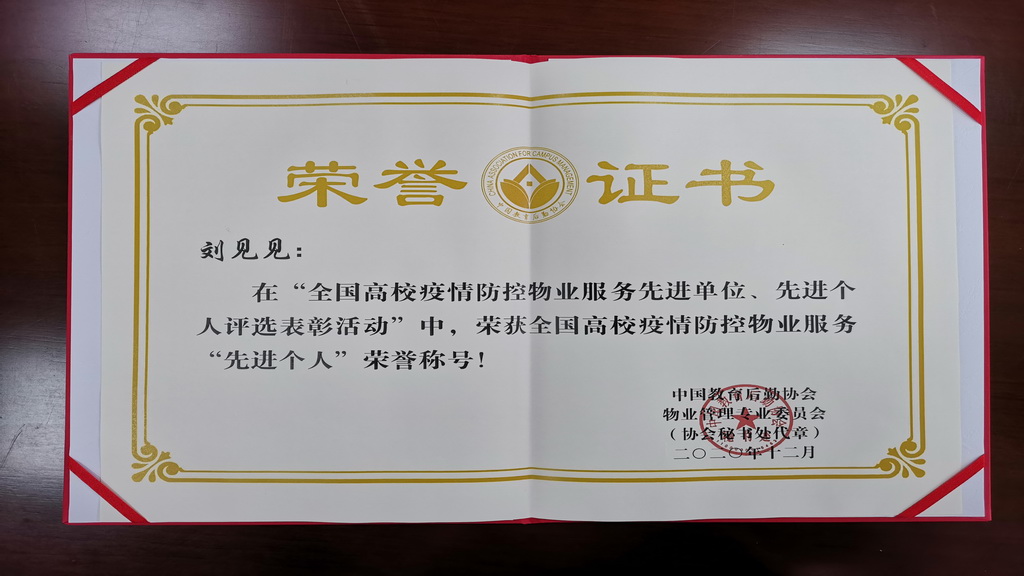 3月28日,中国教育后勤协会物业管理专业委员会2020年会在昆明召开,会上表彰了中国教育后勤全国高校疫情防控物业服务先进单位、先进个人。我校后勤管理处接待中心主任刘见见获得江西省高校唯一一名“全国高校疫情防控物业服务先进个人”荣誉称号,为学校争得了荣誉。