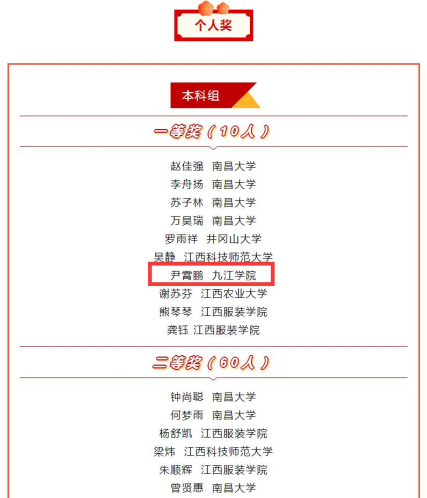 为迎接中国共产党百年华诞,传播社会主义先进文化,浓厚校园学习氛围,江西省高等学校图书情报工作委员会、中国知网江西分公司于4月1日-5月1日举办了首届江西高校“知网研学”杯积分挑战赛,我校有700余名师生参与其中。在刚刚公布的获奖名单中,我校获得“优秀组织奖”,我校师生取得了1个一等奖、3个二等奖和7个三等奖的好成绩,图书馆刘佳佳老师获得“优秀指导老师奖”。