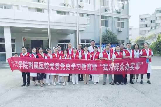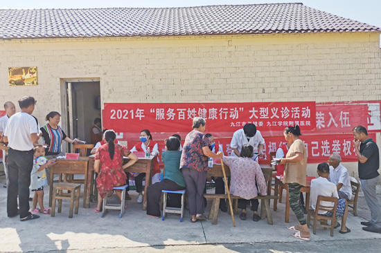 为庆祝中国共产党成立100周年,深入贯彻党中央关于开展党史学习教育的决策部署,结合“我为群众办实事”实践活动,近日,九江学院附属医院组织专家团队前往都昌县多宝乡周仓村和濂溪区中国中铁四局集团开展义诊活动。