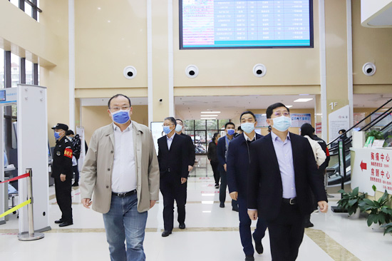 宁小球一行先后到医院停车场、门诊大厅、住院部、发热门诊等处实地查看,询问了解各项工作开展情况,并认真听取了附属医院省级区域医疗中心项目建设相关情况。