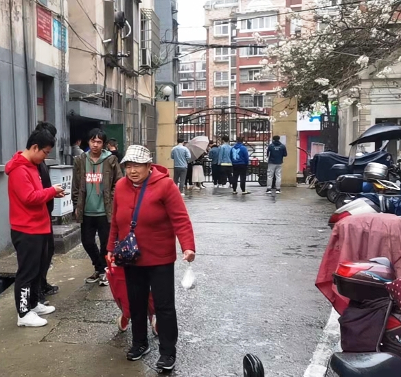 经过“岗前培训”,从3月19日开始,每天会有2位退休同志上岗值守。他们严格落实校门管控要求,对持有临时通行证的校区住户扫码测温放行,其他人员不得通行。连日来九江的阴雨天气,使得清晨的气温不到10℃,两个小时的户外值守对于老同志来说其实并不轻松,他们用热情和信念充实了浔东校区防疫力量,为校区居民守住健康防线。