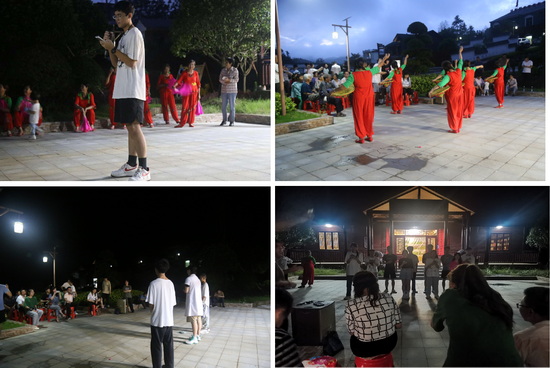 在了解到双新村村民晚上基本没有什么娱乐活动后,实践队和村民们举行了晚会联谊活动。精彩的才艺表演、红歌传唱、“海姆立克法”急救知识的现场演示,为乡亲们送去了欢乐,送去了健康,共筑爱党爱国之情。