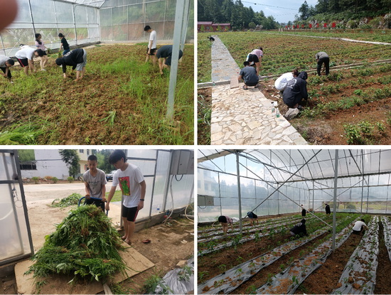 据了解,双新村在党员队伍的带领下,以“一绿一红产业为主导、多种产业相补充”的产业布局、旅互促,全力打造高山产业第一村休闲旅游度假村,前景可期。产业兴旺是乡村振兴的首要任务,唯有产业兴,才能百姓富、生活美。实践队来到示范种植大棚,参观了双新村产业红辣椒和白茶等种植情况,实地调研乡村振兴情况,切身感受党的为民保农好政策。之后,大家在茶园和辣椒园积极开展了除草志愿服务活动,在实践中接近老百姓,领悟劳动的魅力,培育劳动精神。同学们纷纷表示,在走近基层、走进群众中切实感受到了巩固脱贫攻坚成果和乡村振兴带给老百姓幸福的生活,在基层一线一样可以实现人生价值,贡献青春力量。