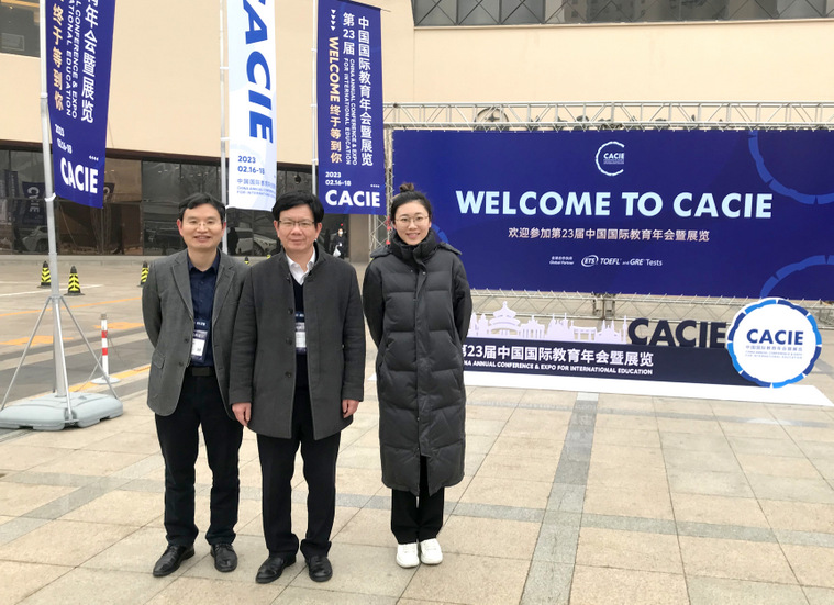 2月16日—2月18日,由中国教育国际交流协会主办的第23届中国国际教育年会暨展览(CACIE)在北京召开。本次年会以“适应与改变—重塑我们的教育”为主题,邀请了全球教育界精英及政府、企业、社会各界代表,中国教育部部长怀进鹏发表了视频致辞。为推进我校的教育国际交流工作,我校副校长王万山带领我校国际合作交流处、国际合作交流学院负责人参加此次会议及展览,并与众多海内外高校和机构进行洽谈。