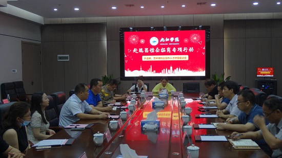 在瑞昌市副市长高阔的陪同下,调研组在瑞昌市经开区管委会召开了九江学院访企拓岗专项行动外语类、艺术类校企合作人才对接座谈会,与瑞昌市经开区、商务局、人社局、团市委、瑞昌中专等部门负责人和12家企业进行了深入洽谈交流。
