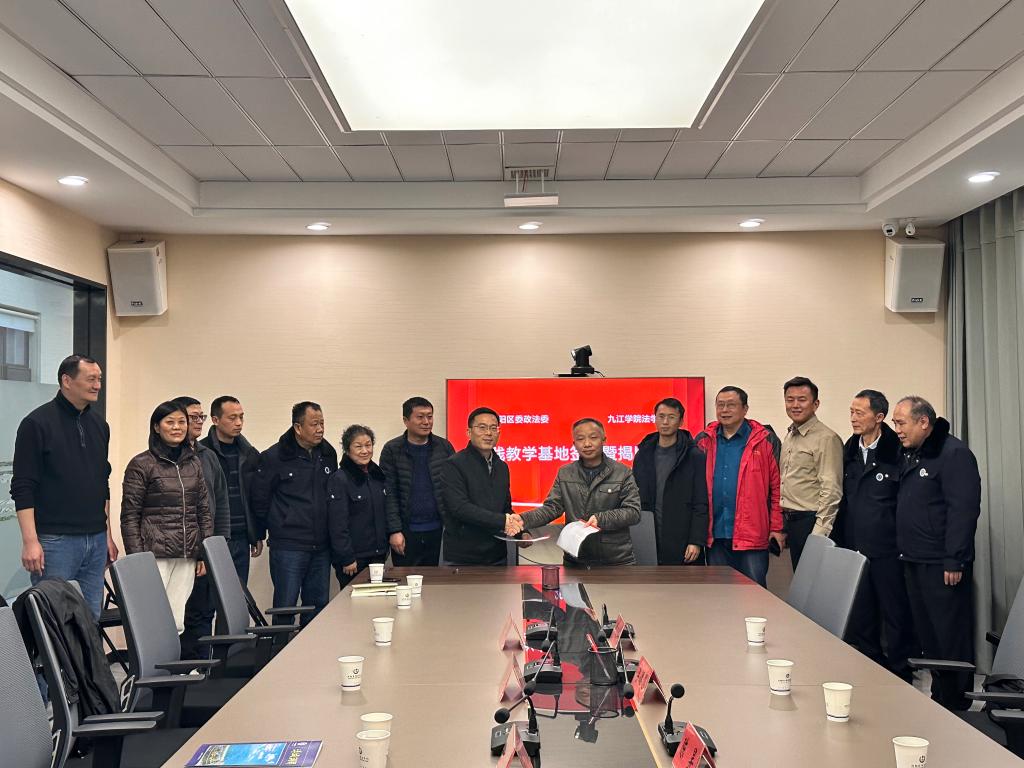 浔阳区委常委政法委书记胡明海就浔阳区综治中心及多元调解工作相关情况进行了介绍,并表示希望能加强与九江学院法学院之间的交流与合作,为社会综合治理及多元调解工作提供理论和智力支持,强化多元调解工作队伍专业素养。法学院负责人李德恩表示,希望充分利用浔阳区多元调解服务中心工作实践累积资源,与法学院优质教育教学资源与法学领域理论研究成果,大力推进地方政法工作实务与法学教育相结合,积极推动法治九江、法治浔阳建设,以实现政法工作实践、法律服务与法学教学、法治教育的相互融合,共同实现资源共享、优势互补、紧密合作、共同发展的合作宗旨和目标。