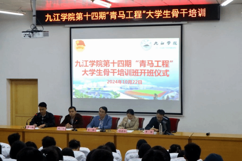 为深入学习贯彻习近平新时代中国特色社会主义思想和党的二十届三中全会精神,深化实施青年马克思主义者培养工程,10月22日晚,九江学院第十四期“青马工程”大学生骨干培训班开班仪式在主图书馆报告厅举行。学校相关部门、二级学院负责人出席会议。