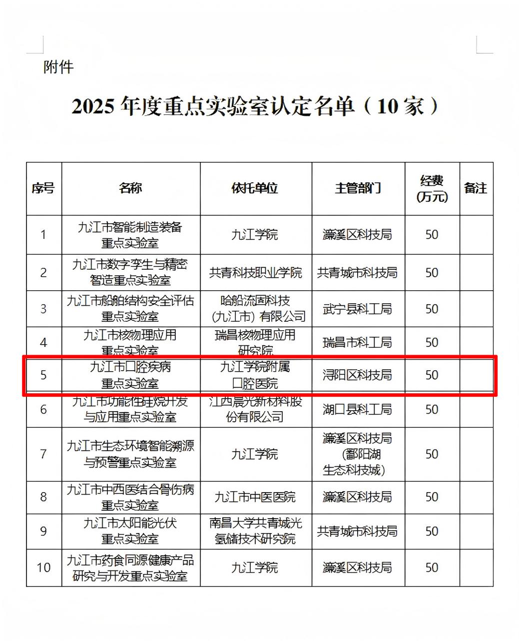 近日,九江市科学技术局公布了2025年度市级科创平台载体认定名单,依托九江学院附属口腔医院申报的“九江市口腔疾病重点实验室”成功获批。该实验室的设立,是附属口腔医院在科研平台建设方面取得的一项重要突破。