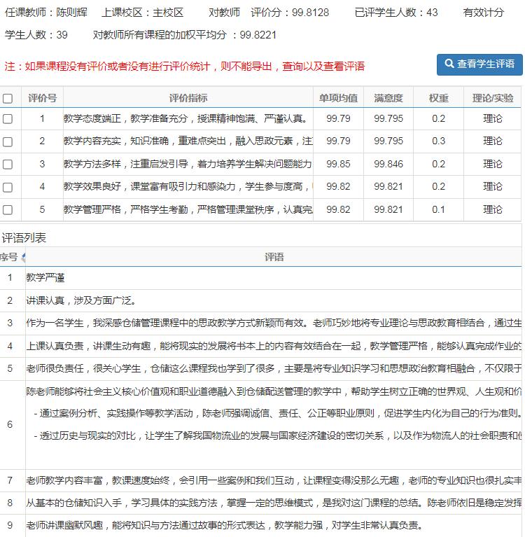 学生对《仓储与配送管理》课程的“学评教”
