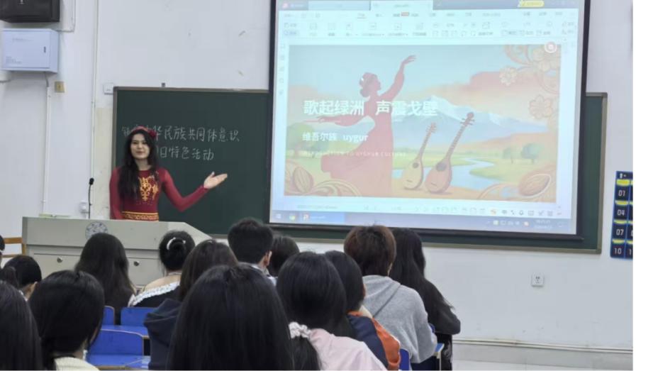 4月12日,文学院以“铸牢中华民族共同体意识”为主题,创新举办沉浸式主题团日活动,打破传统座谈模式,以互动化、场景化设计拉近各民族同学情感距离。活动伊始,全体团员齐唱共青团团歌,激昂旋律奏响青春团结序曲。“民族风采展示”环节中,宣讲团成员艾柯代身着新疆民族服饰,分享身边鲜活的民族团结故事,引发全场共鸣;随后的民族服饰走秀、才艺展演及文化微分享,多维呈现各民族服饰、歌舞、习俗特点,让同学们在轻松氛围中深化对各民族文化的理解与尊重,深刻体会“各民族像石榴籽一样紧紧抱在一起”的内涵。